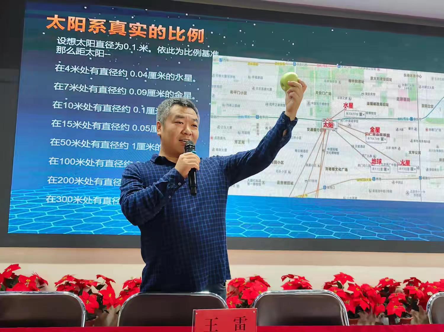 此次活动区科协聘请了富有创新精神的团队。他们在天文科技领域拥有深厚的学术背景和丰富的实践经验。今天,我们将有幸聆听他们的见解、学习他们的经验,领略天文的美好与魅力。王雷老师以《宇宙框架的建立》为题讲座,讲述了现代天文学宇宙尺度框架建立的历史过程和所涉及的科学方法。王老师以生动的语言、丰富的实例和精彩的互动,让我们对科学有了更深入的认识和了解。同时,鼓励我们要继续关注科学、热爱科学,不断追求知识、探索未知。