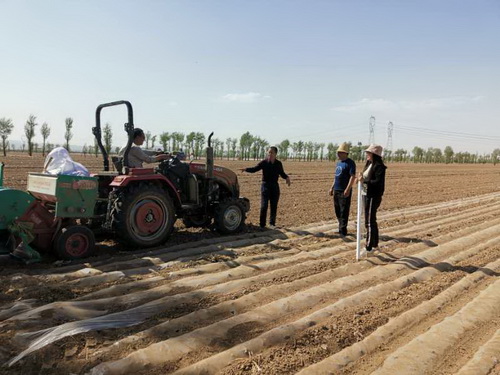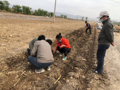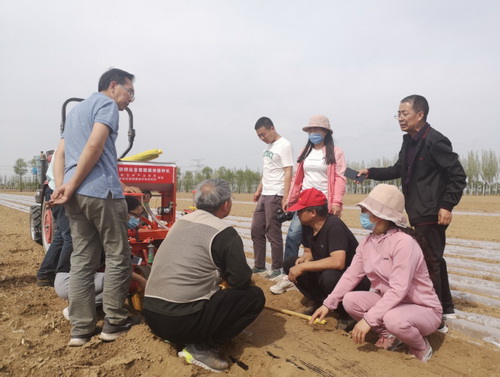 在蔚县期间,北方学院专家团队在南大坪田地进行寒旱区春玉米全膜覆盖双垄沟播旱作丰产栽培和大垄免耕秸秆还田技术示范,并对秸秆还田地块和对照地块分别进行土壤分析检测,同时对地膜进行技术试验。专家团队采用了0.006mm,0.008mm和0.012mm三种不同厚度的膜进行播种,比较不同厚度的地膜对残膜回收的影响及回收效果;同时,采用全面覆盖、半膜覆盖膜上播种和半膜覆盖膜侧播种三种不同覆膜方式,比较不同覆膜播种方式对玉米的出苗情况、水分利用效率、产量及残膜回收的影响和收获后残膜回收的效果,并对种植过程中出现的问题,如播种过程中容易卡土、地膜覆盖不严、肥料下落不通畅等问题进行讨论,以便对覆膜机械作进一步改进,以便有效解决残膜回收问题,保护土壤环境。