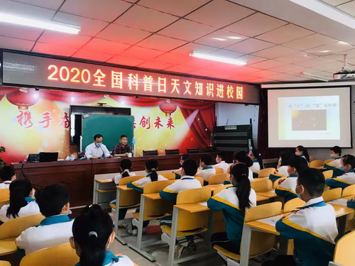 为进一步推动科学文化建设与繁荣,形成全民读科学、学科学、用科学的良好社会氛围,培养学生接触科学、感知世界和走进科学知识殿堂的兴趣,9月25日上午,张家口市科协、怀来县科协在沙城镇府前小学开展2020年全国科普日河北省主场系列活动天文知识进校园活动,为该校五年级学生献上了一堂精彩的天文知识科普课。